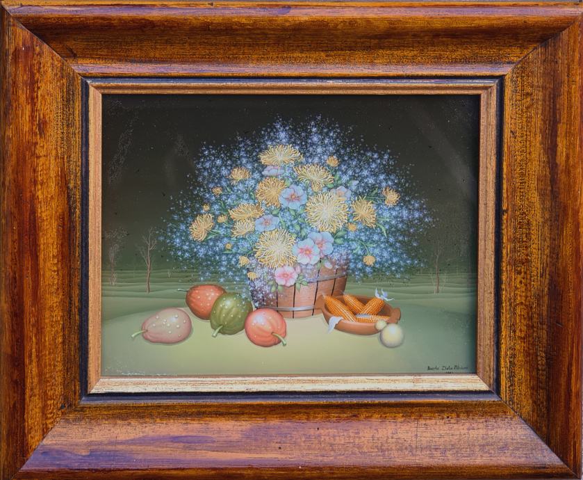 Biserka Zlatar "Cvijeće" ulje na staklu 20x25cm; iz 1983. godine;