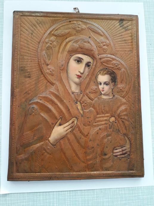 bakrorez, bogorodica s isusom, podloga drvo,slika, dimenzije 24x19