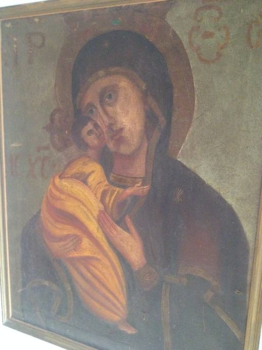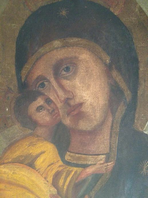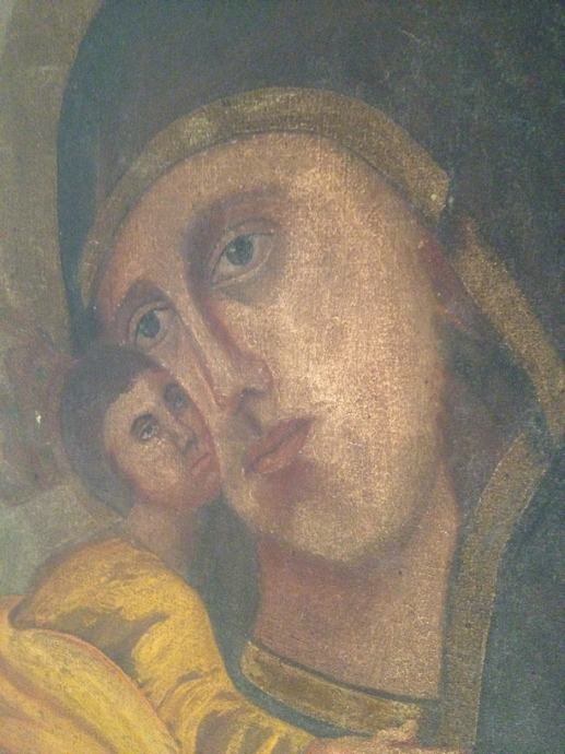 Slika prikazuje Bogorodicu koja nosi Isusa u naručju.