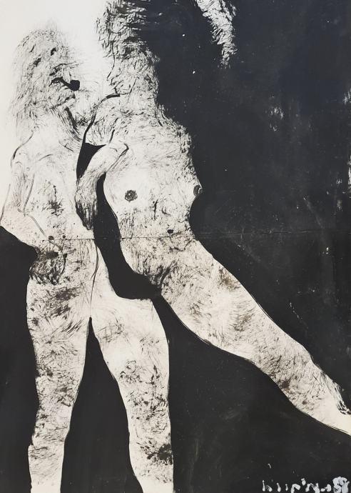 Boris Bućan "Muškarac s lulom i gola žena" ulje-akril na papiru 140x100 cm; iz 1988 godine;