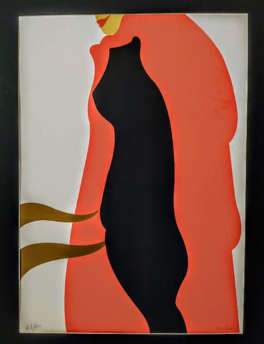 Velika grafika, žena mačka, mapa Lorca, uramljena, novi okvir, dimenzije sa okvirom 64x84 cm, uz sliku dobijete račun.