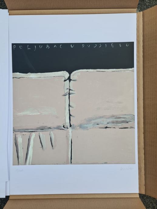 Boris Bućan "POLJUBAC U DVOSJEDU" svilotisak serigrafija 70x50cm;