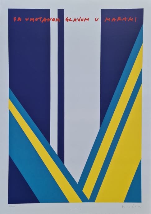 Boris Bućan "Sa umotanom glavom u marami" svilotisak serigrafija 1/100 dimenzije 70x50cm, iz mape Saturn koja sadrži 17 grafičkih listova, 1 list je 500eura, cijela mapa je 6000 eura, no ponude s brojem telefona su dobrodošle u inbox!