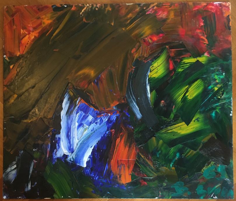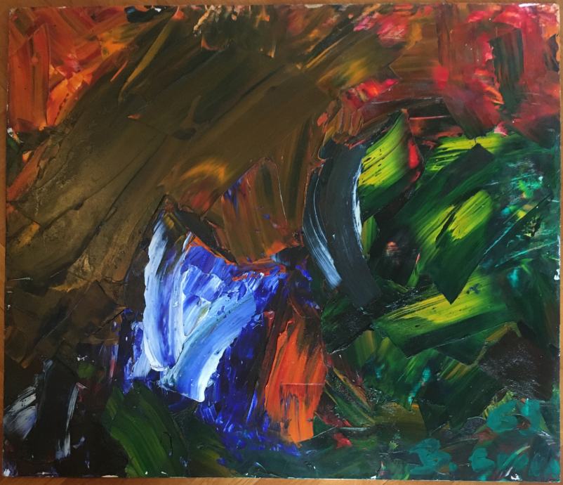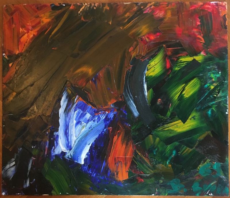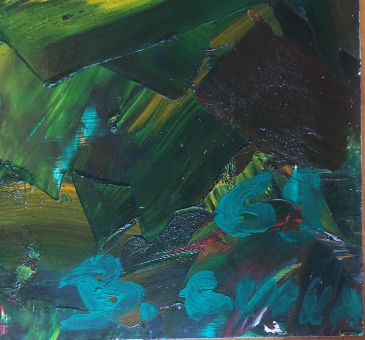 Ulje na lesonitu iz 1969.g. slikara Borisa Guine. Apstraktni motiv. Dimenzije 70x61cm. Nije uokvireno.