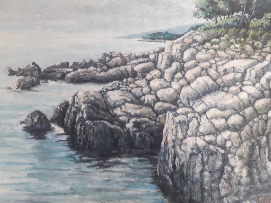 Boris Kolar, ulje na lesonitu, Morski motiv, vrhunski okvir, potpisano