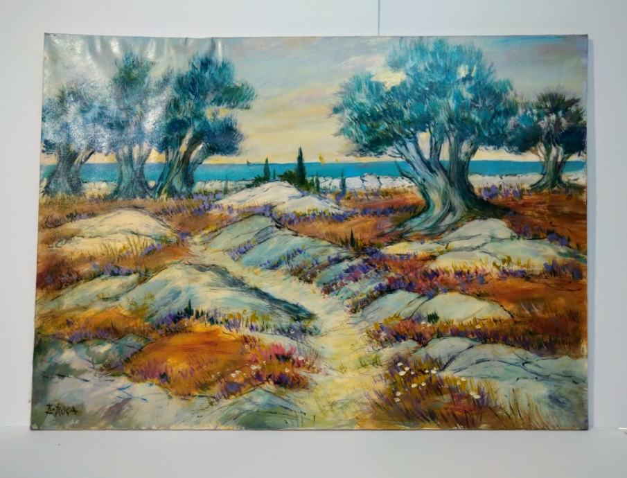 Stari maslinik, veliko platno Borisa Roce, neuramljeno.