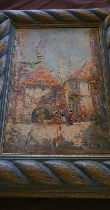 Jelkić Midhat Bosner - motiv Kamenitih vrata, dimenzije 21x30 cm, akril na platnu.