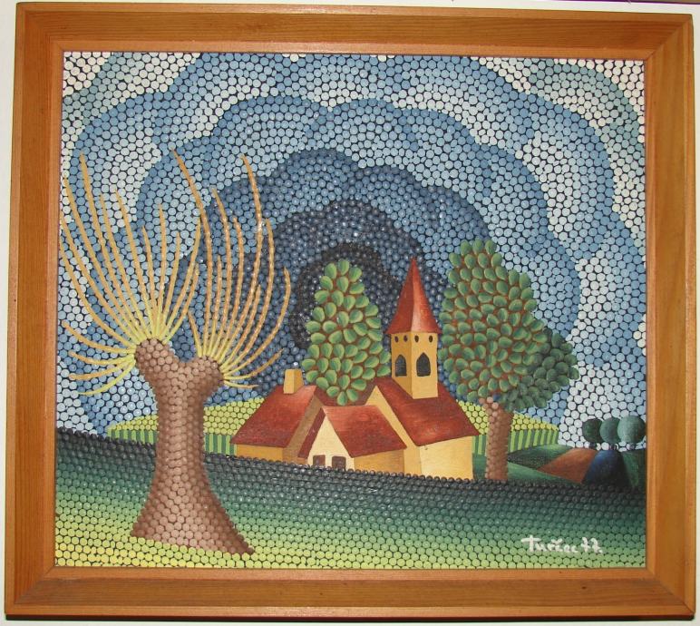 Božidar Turčec, poznati hrvatski slikar naive, rođen 1949. Ulje na platnu iz 1977., dimenzija cca 35x25cm. Cijena 2500kn