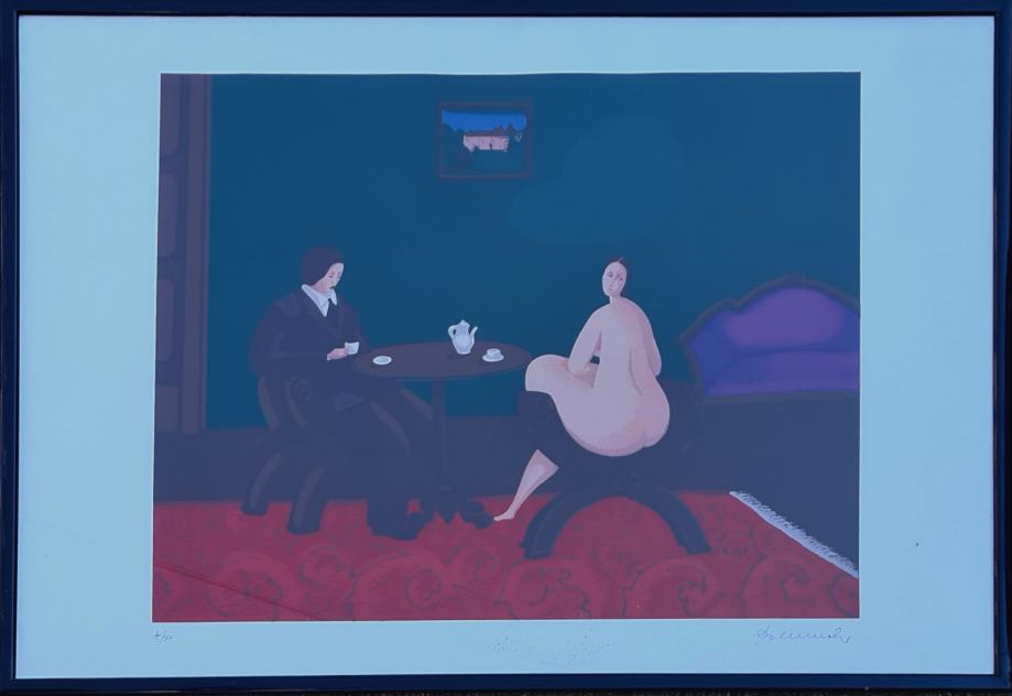 Branko Bahunek "Čajanka" svilotisak serigrafija 50x70cm; iz 1982. godine;