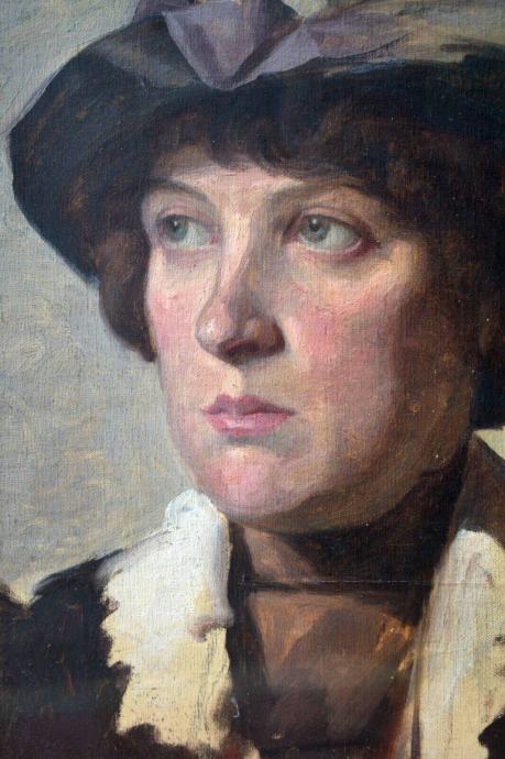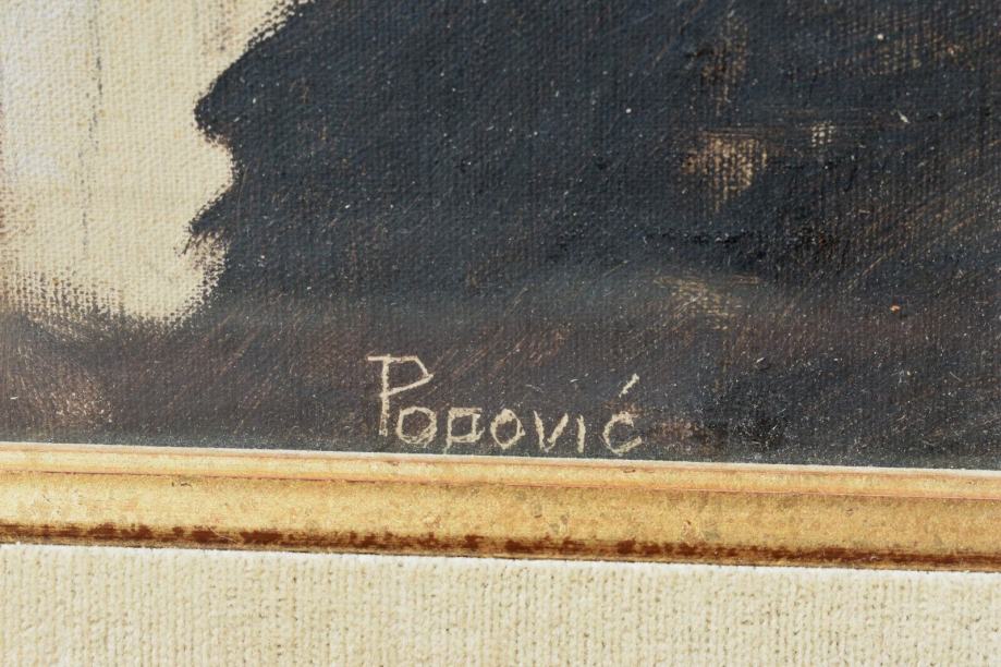 Ulje na platnu, kaširano na kartonu, dimenzija 40x32 cm bez okvira i 55x47 cm sa okvirom. Slika je bila pod staklom, ali mi je pala, tako da je staklo puklo.
