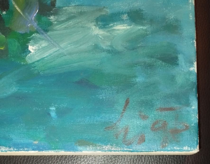 Ulje na platnu s morskim motivom, karlovačkog akademskog slikara Bratislava Lebarića. Dimenzije 41x35,5cm.
