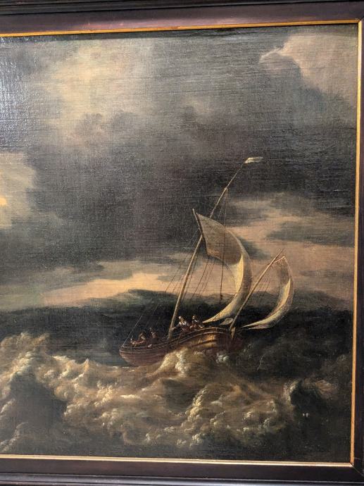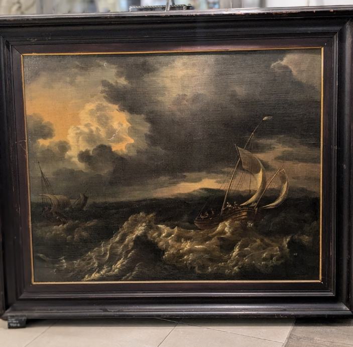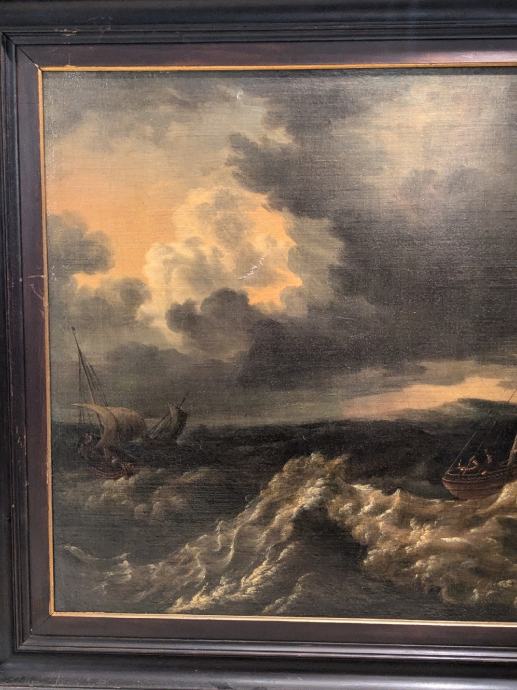 Fantastičan rad u masivnom okviru. Na vidljivom dijelu nije potpisana, platno nismo vadili iz okvira.