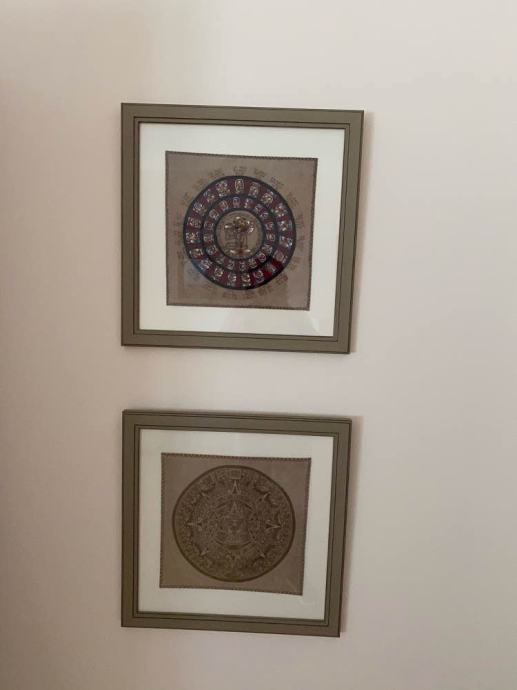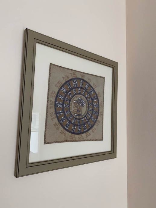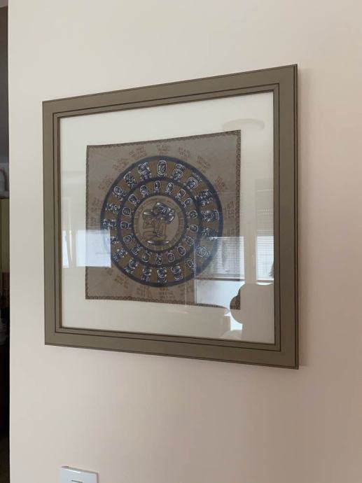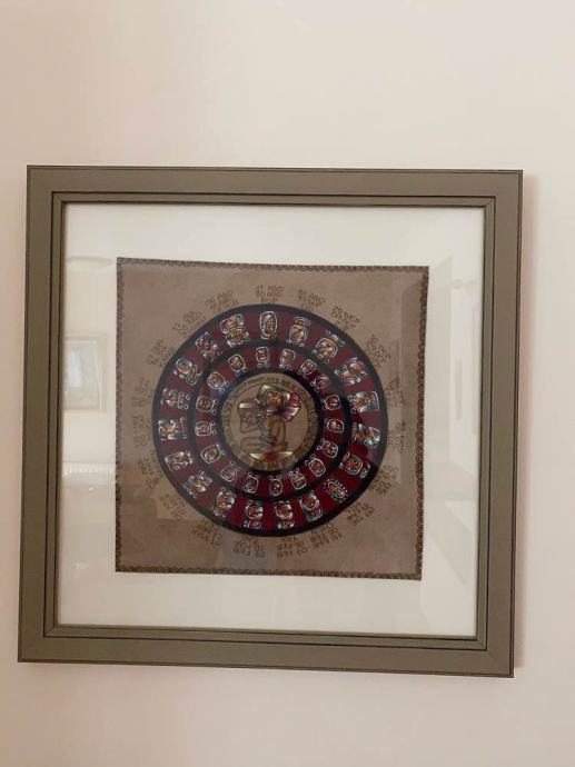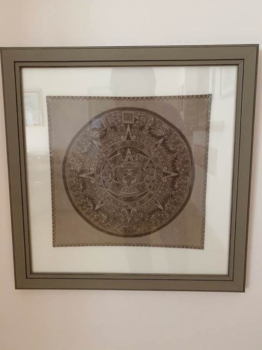 Lijepo i skupo uokvireni motivi majanskig kalendara i asteckog osmog mjeca, iscrtanih na kozi - kupljeno u Meksiku.