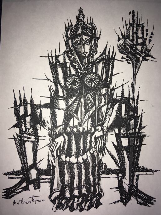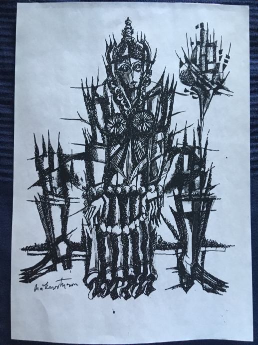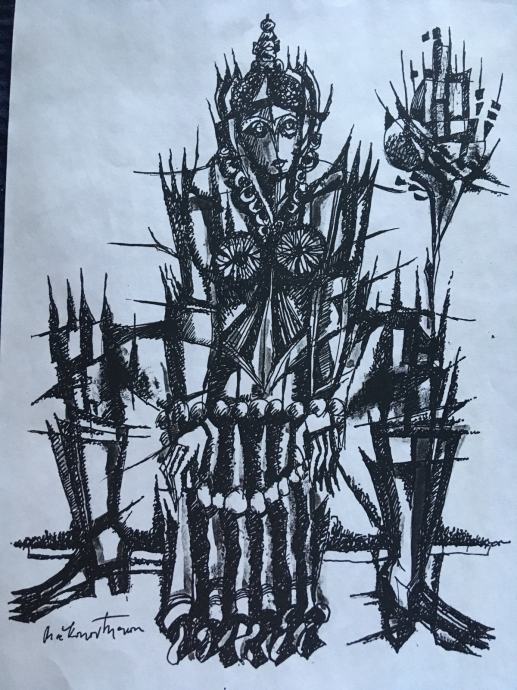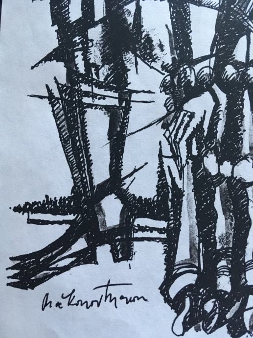 Crtež tušem meni nepoznatog autora (nečitko potpisano). Dimenzije su 30x21cm