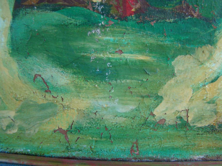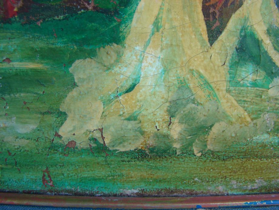 Slici je potrebno čiščenje, popravak i preuokvirenje. Sve vidljivo na slikama.82 x 56 cm ukupno