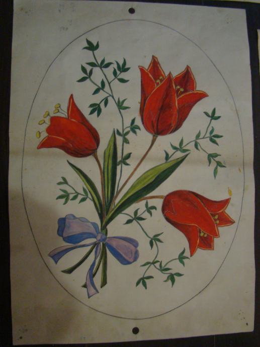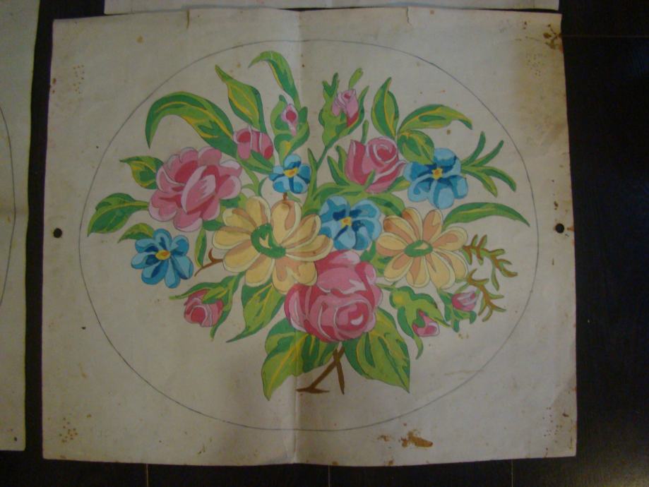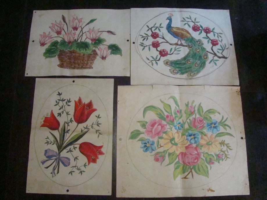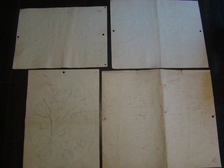 56 x 47 cm največa od njih. Na svakoj slici su grafitnom olovkom zacrtane konture. Slike jesu ručni rad ali kao da su bile predlošci za goblene. Najvjerojatnije preko indigo papira su precrtavane na platno. Cijena je za cijeli lot