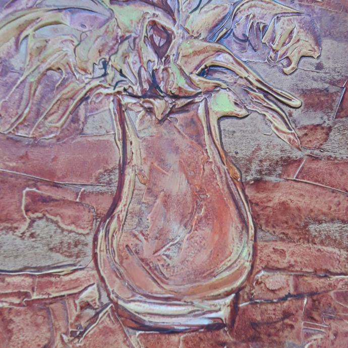 Ulje na platnu,veličina same slike je 50x70 cm.,potpis autora i godina nastanka djela vidljivi su u donjem desnom kutu Kos 975( Emil Kos Hrvatski akademski slikar r.Sarajevo 1940 + Rovinj 2021).Slika je uokvirena u jednostavnu ramu,očuvanost same slike od 1-10 je 9,što je i vidljivo iz priloženih fotografija.