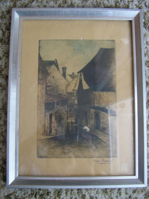 D. Renarić grafika. Kamenita vrata.stari hrvatski umjetnik 24 x 17 c