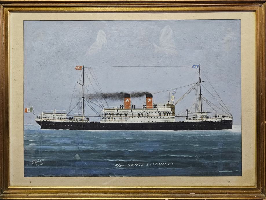 Dantea Alighierija izgradila je Società Esercizio Bacini iz Rive Trigoso 1914. za Transatlanticu Italianu. Bio je to brod nosivosti 9754 BRT , ukupne duljine 503,7 stopa (153,5 m) i širine 59,5 stopa (18,1 m) . Imala je smještaj za 100 putnika prve klase, 260 druge klase i 1825 putnika treće klase. Porinut 28. studenog 1914., otplovio je na svoje prvo putovanje od Genove do Palerma i New Yorka 10. veljače 1915. Nakon što su Sjedinjene Države ušle u Prvi svjetski rat , unajmljen je kao prijevoz trupa i priključen Ratnoj mornarici Sjedinjenih Država Krstarica i transportna snaga . Nakon završetka rata, Dante Alighieri je nastavio svoju liniju Genova-New York, nastavljajući na istoj ruti do listopada 1927. Otputovao je iz New Yorka za Lisabon , Napulj i Genovu u studenom 1927. Godine 1928. brod je prodan Japanska tvrtka Nippon Yusen Kaisha (NYK) i preimenovana u Asahi Maru . Godine 1937. pretvorena je u bolnički brod. Godine 1940. dala joj je ukloniti jedan lijevak . Dana 24. siječnja 1942., bolnički brod je pogođen paljbom s razarača USS John D. Ford , tijekom američkog prodora na Balikpapan . 10. studenog 1943. brod je pretvoren u pomoćni transport. Dana 5. veljače 1944., Asahi Maru je oštećen u sudaru u Japanskom unutarnjem moru , nasukan, prelomljen na dva dijela i napušten. Brodski teret spašen je krajem veljače. Otpisana je 1949.