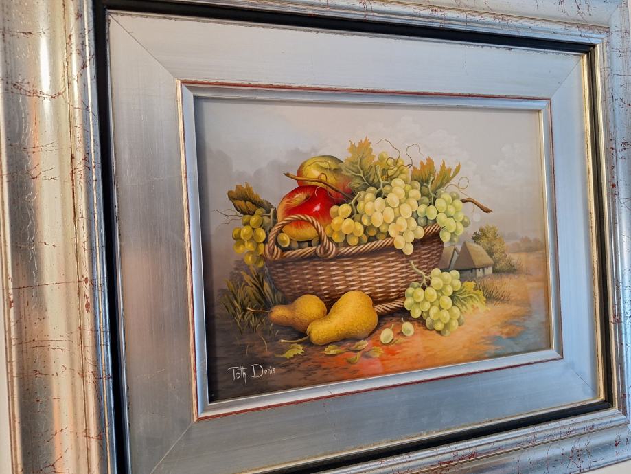Slika poznatog slikara naive Denisa Totha dim. 35×25cm staklo, sa bogatim novim okvirom 63×53cm.