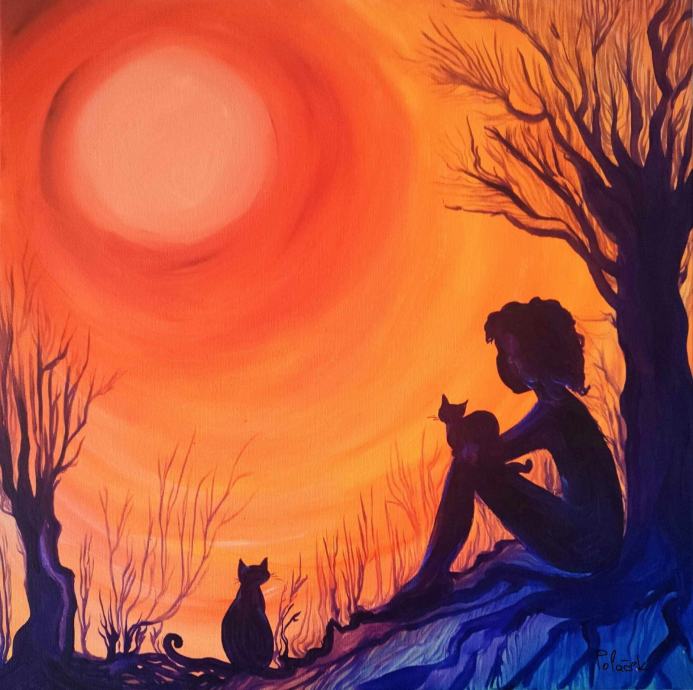 Iz ciklusa ''mačkoslike'', u vrlo prepoznatljivom stilu autorice. Slika je izuzetno topla i posebnog ugođaja, obojana ljubavlju prema macama.