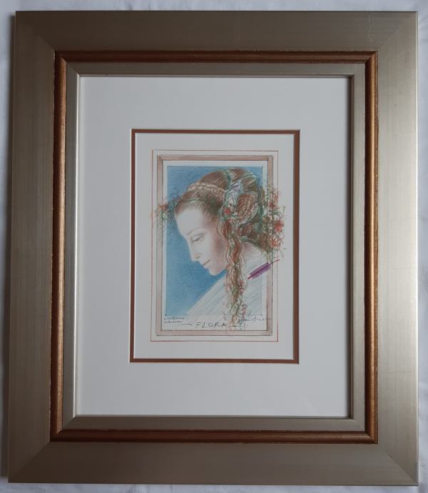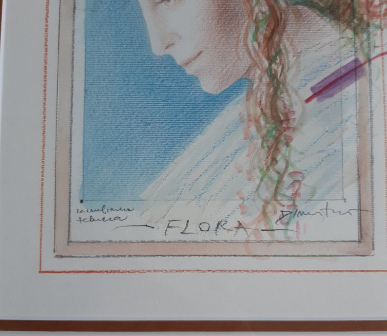Uokvirena slika Dimitrije Popovića, Flora-kombinirana tehnika.