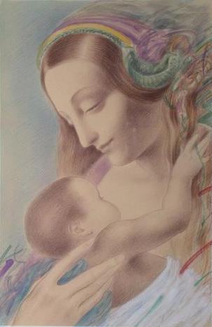 tehnika: Kombinirana tehnika , doslikana ručno bojicom, olovkom , akvarelom, vlastoručno potpisano