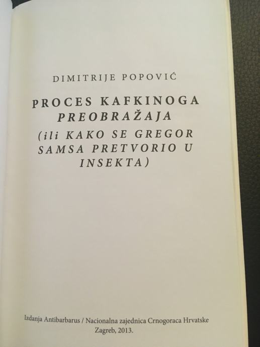 DIMITRIJE POPOVIĆ - Proces Kafkinoga preobražaja -potpis. knjiga-crtež