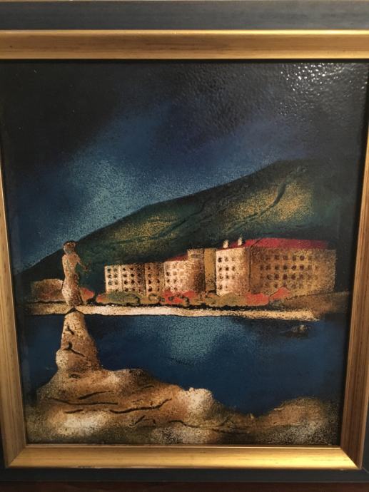 Slika djevojke sa galebom,ulje na metalu(neznam kojem).