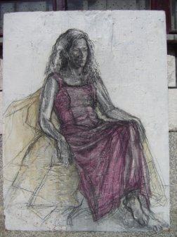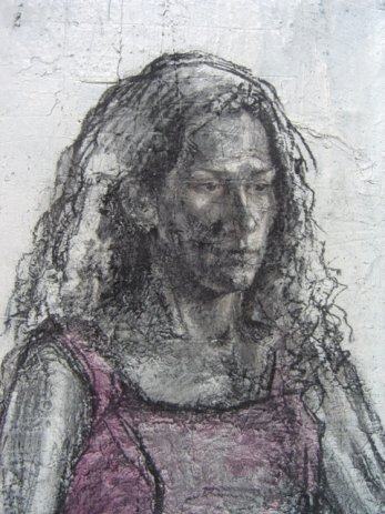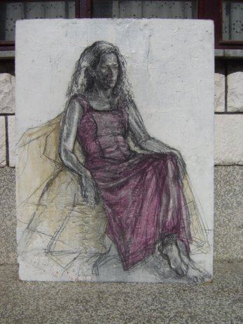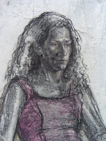 "Djevojka u ljubicastom", akademski slikar Ivica Kurtz, 120x90cm, ugljen na lesonitu, slika je bez rama.
