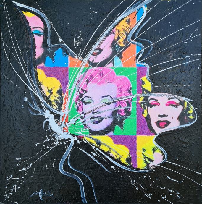 Domenico Gonzi "Leptir homage Warhole" ulje na platnu 70x70cm;