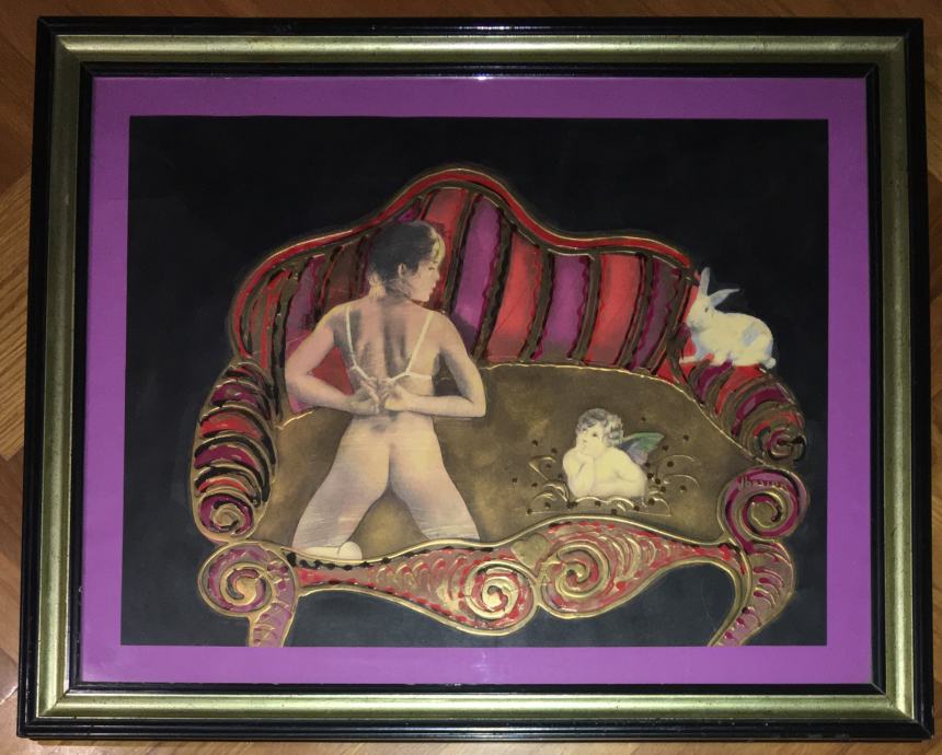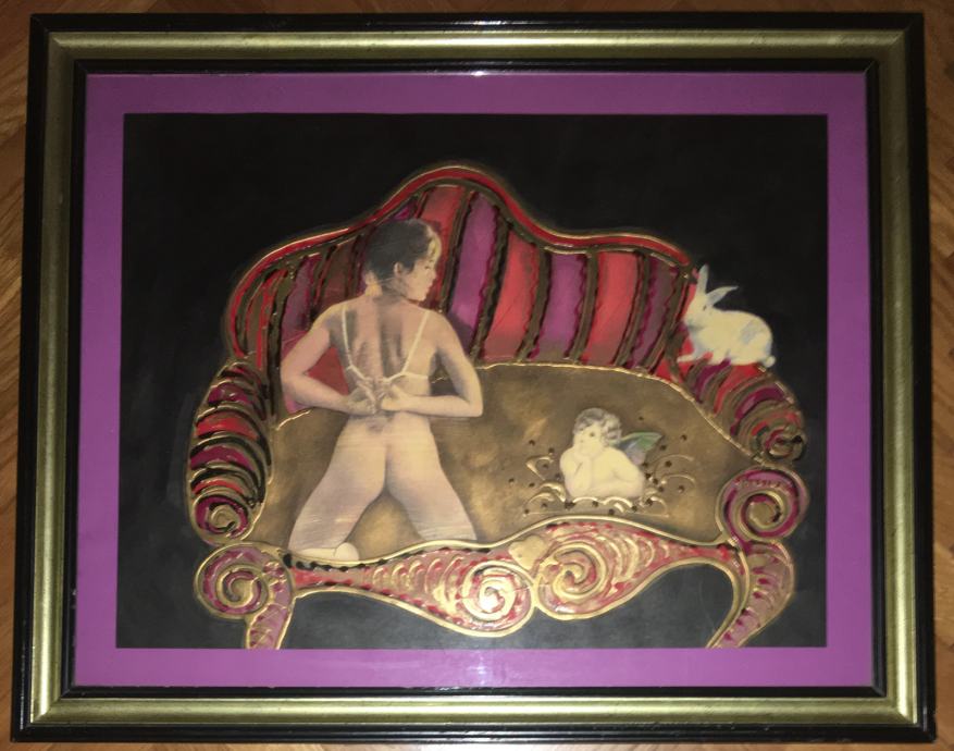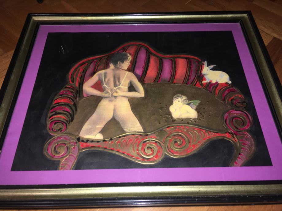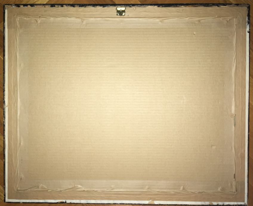 Doru Bosiok – Kombinirana tehnika na lesonitu (ulje, kolaž, pozlata). Luksuzno uokvireno. Dimenzije s okvirom su 75x57cm (unutar paspartua 55x42cm).