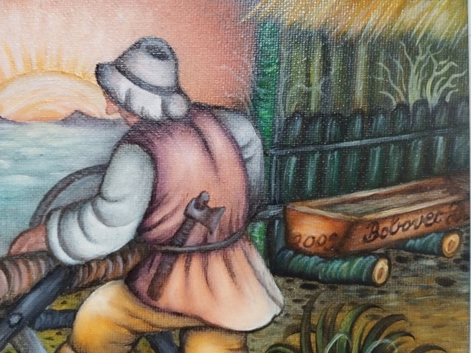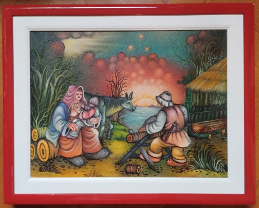 Ulje na platnu poznatog hrvatskog slikara naive, Dragana Bobovca. Uramljeno u galeriji. Dimenzije s ramom 49x39cm.