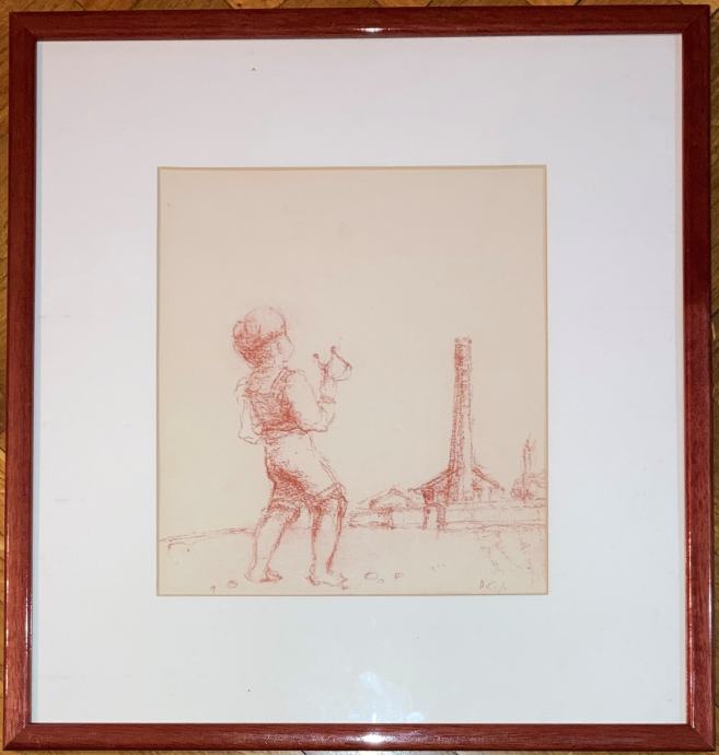 Crtež pastelom poznate hrvatske akademske slikarice, Dragice Cvek Jordan. Uokvireno i ostakljeno. Dimenzije s okvirom 37x36cm (dimenzije unutar paspartua su 22x20cm).