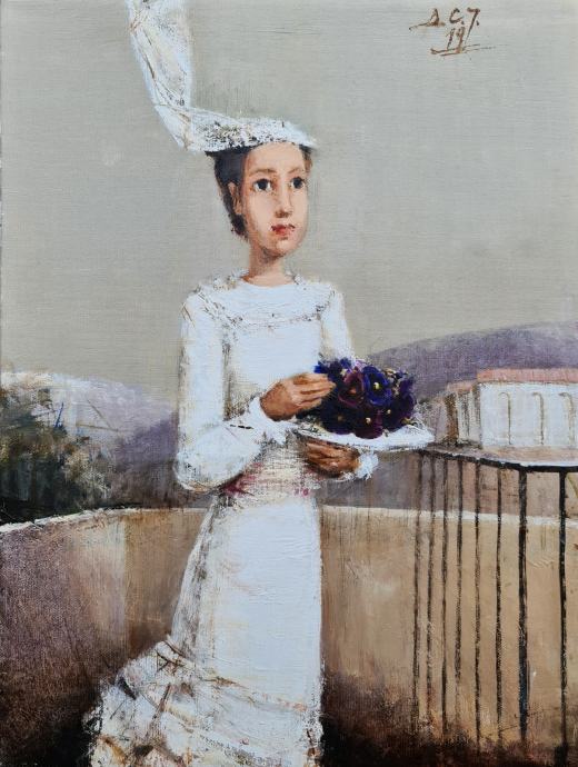 Dragica Cvek Jordan "Mlada s ljubiičicama" ulje na platnu 40x30cm;