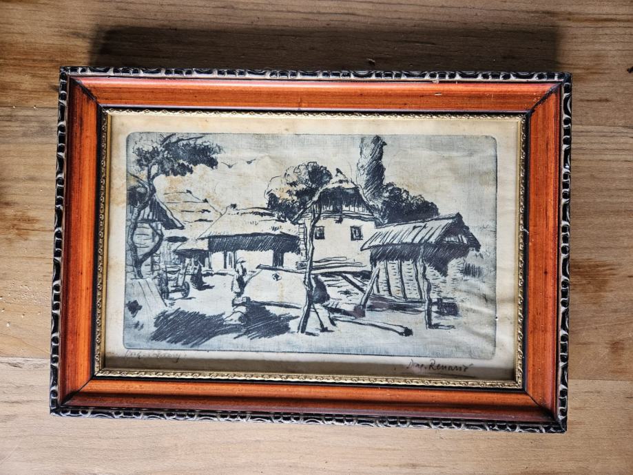 Dimenzije s okvirom 27.5x19 cm, a dimenzije unutar paspartua su 22.5x14 cm.