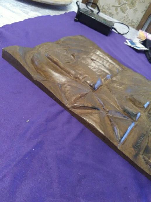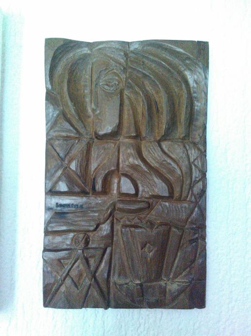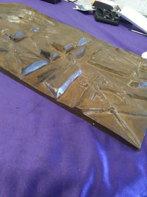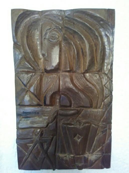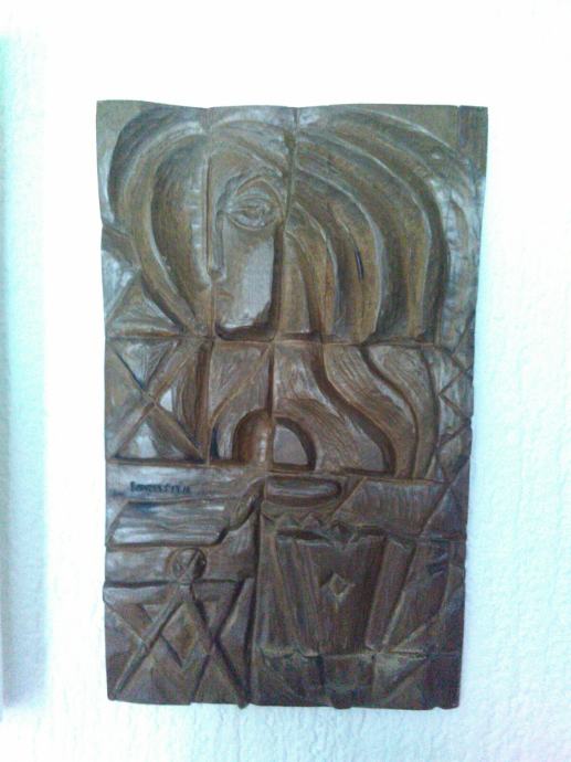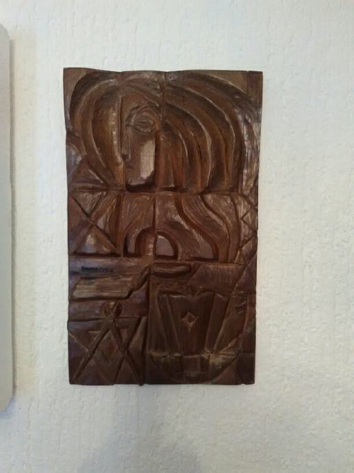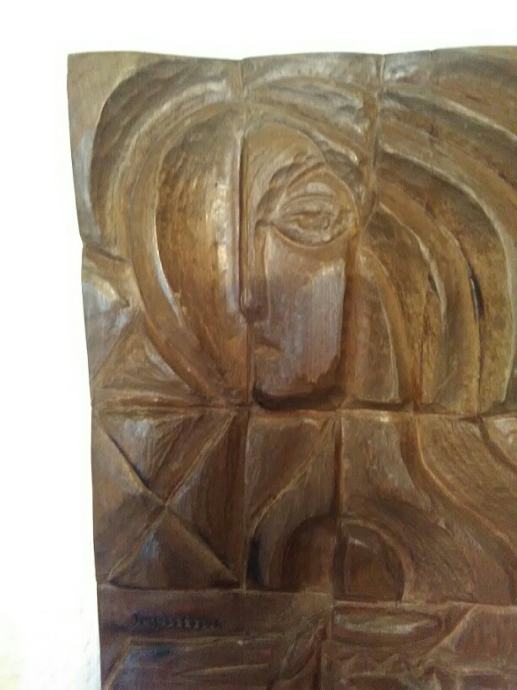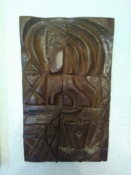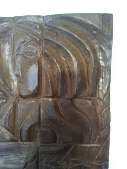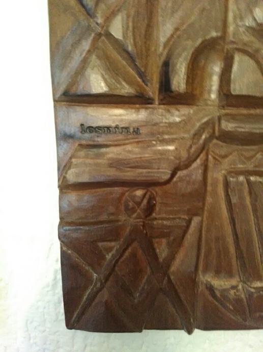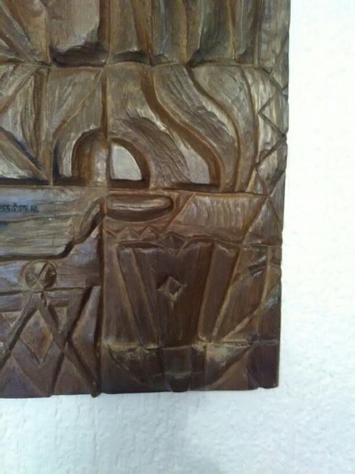 26.5x43.5cm umjetnićki duborez ručno rađen u prirodnom drvetu krasio izložbene prostore lesninovih trgovina 70tih godina 20tog stoljeća.
