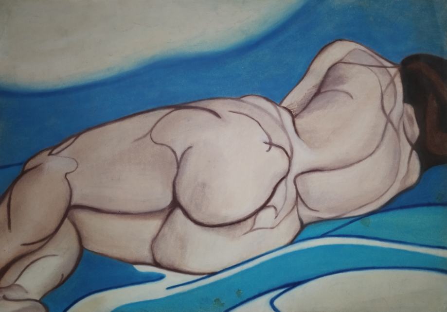 Ženski akt, rad hrvatskog akademskog slikara Dubravka Gjivana. DImenzije 60x42cm. Nije potpisano (iz mape njegovih radova). Bez okvira.