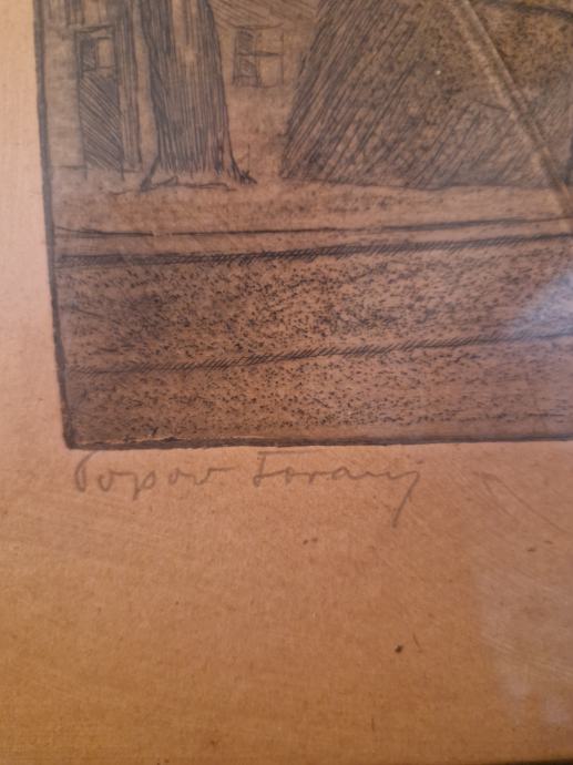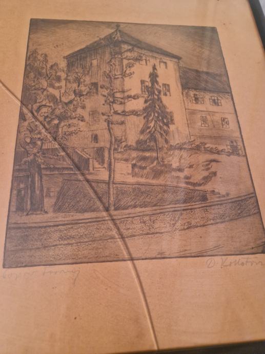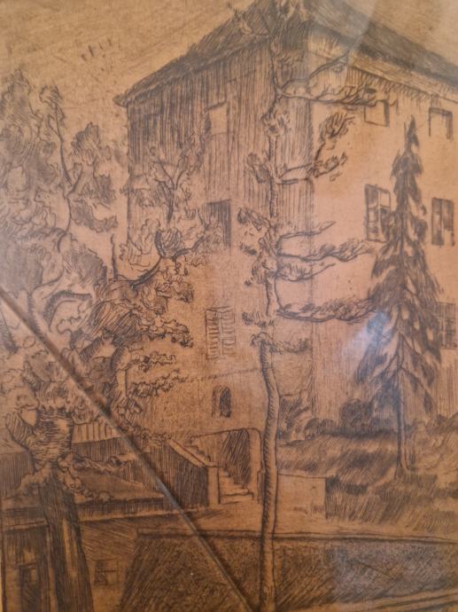 Stari bakropis u originalnom okviru ( staklo puknuto kako se i vidi ali se to promijeni), cca 40 x 35 cm