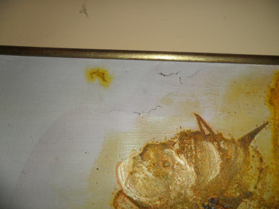 Jedna slika je vel 60x86 ,suncokreti . Slika uz gornji rub ima neznatno oštećenje koje se može pokriti uramljivanjem(vidljivo na trećoj slici). Cijena 3500kn.