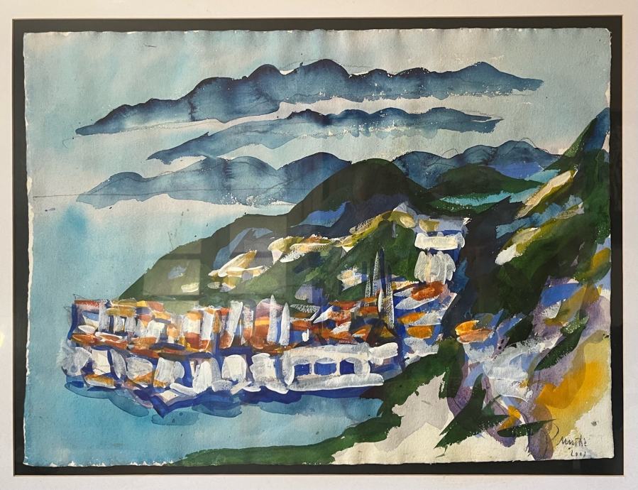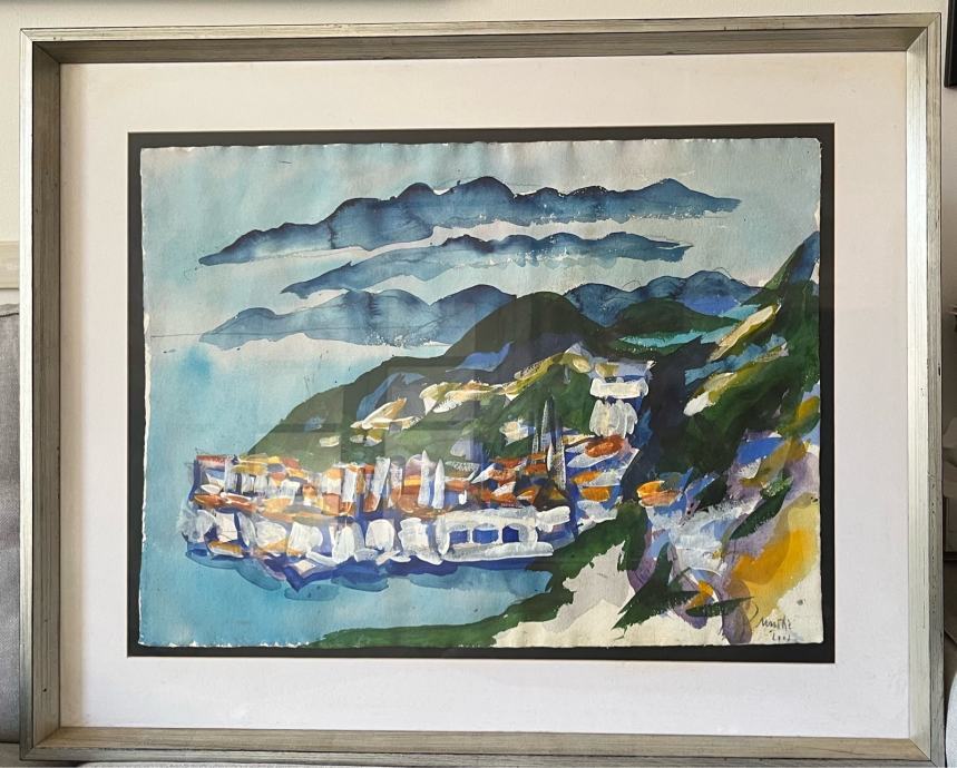 Slika Ede Murtica “Dalmatinski krajolik” tehnika: akvarel i gvas na papir, 2000. Slika 50 x 70, s okvirom 72 x 90. Vrlo ocuvana.
