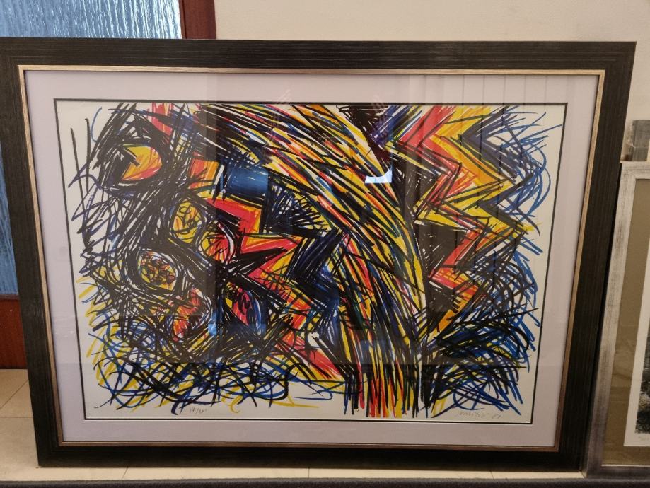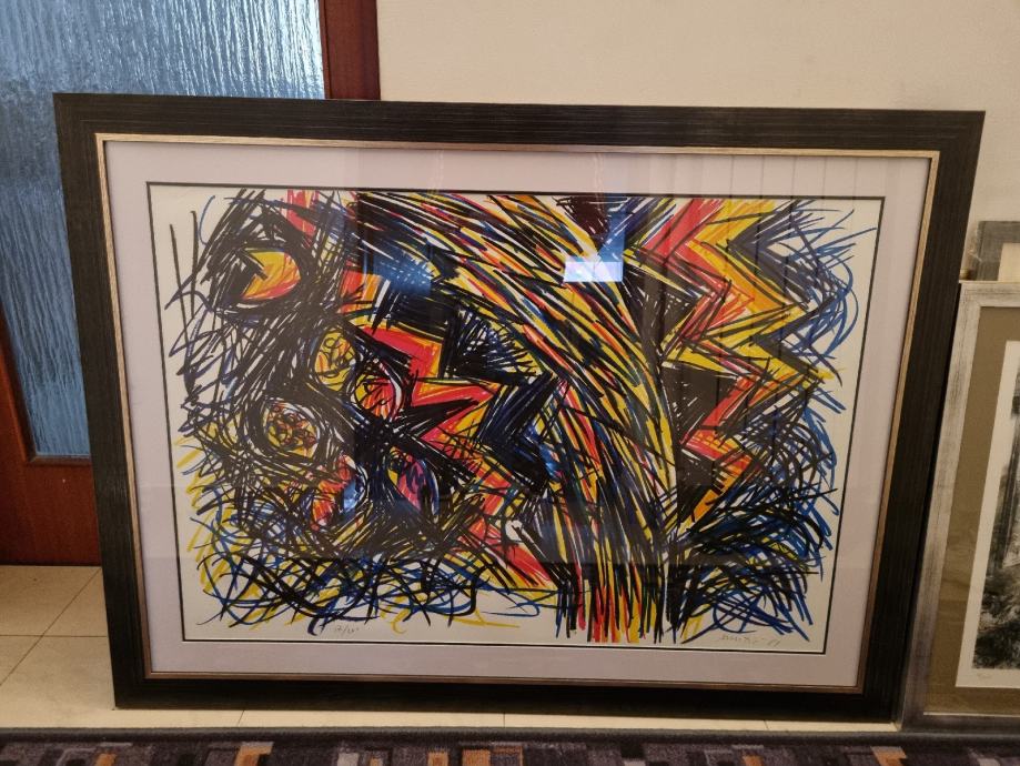 Edo Murtić serigrafija sitotisak dimenzija 120x100 sa vrhunskim okvirom....84 godina