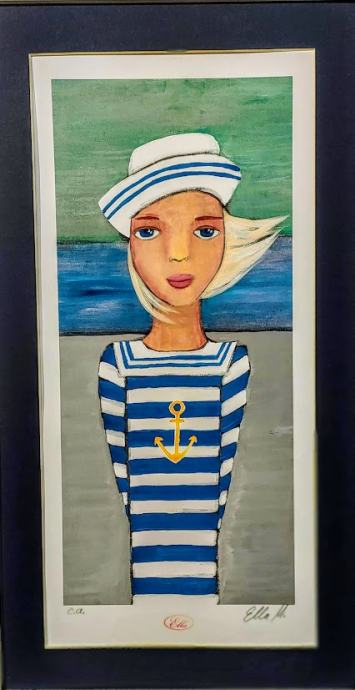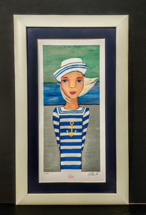 Ella u mornarskoj majici, grafika, opremljena, dimenzije s okvirom 40x66 cm.