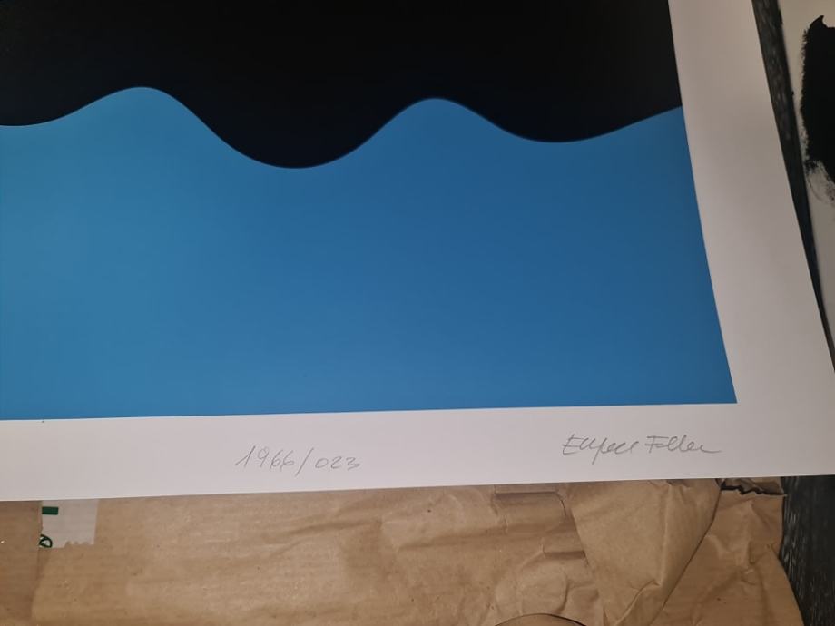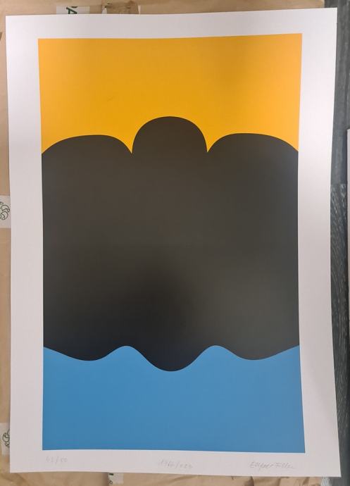 Eugen Feller "Žuto crno plava kompozicija" svilotisak serigrafija 70x50cm; 1966/2023; numeracija 42/50,Uz sliku dobijete certifikat i na uvid fotografije s potpisivanja serigrafije!