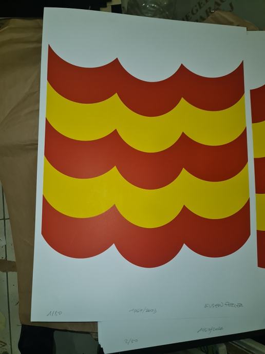 Eugen Feller "Žuto crvena kompozicija"svilotisak serigrafija 70x50cm;