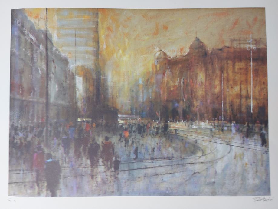 Fahrudin ŠADIĆ grafika TRG BANA 2, dimenzije: 70x50cm