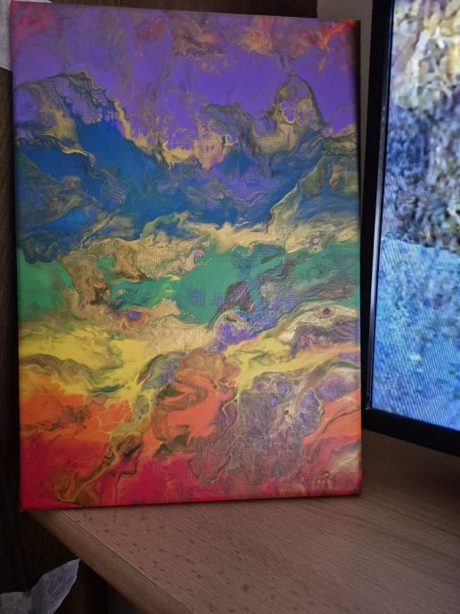 Prodajem sliku urađenu tehnikom akrilnog razlijevanja tj fluid art. 30x21 dimenzije. Idealna za ukras vašeg doma ,ureda ili kao poklon.