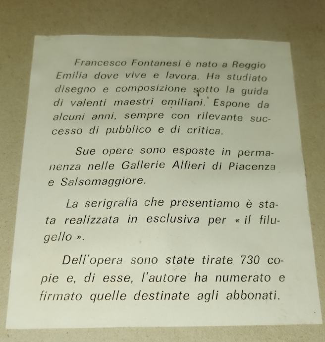 Grafika poznatog talijanskog slikara, Uramljeno, ostakljeno. Dimenzije 38x30cm.