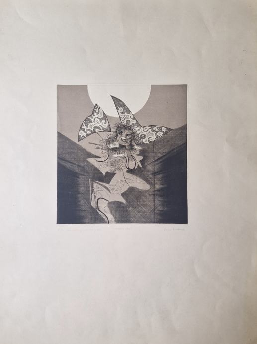 Frane Paro, "Ikarov pad", bakropis, aquatinta, 50x70cm
