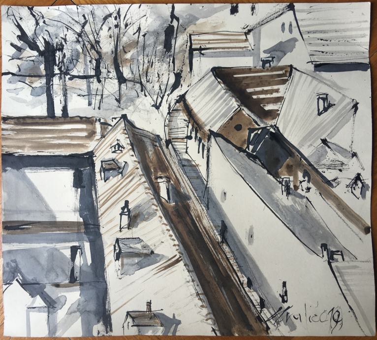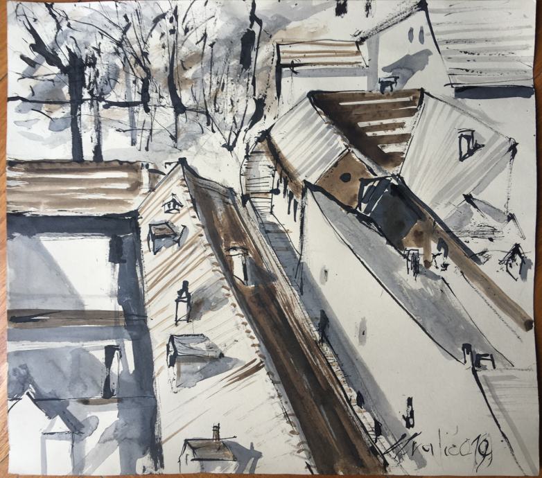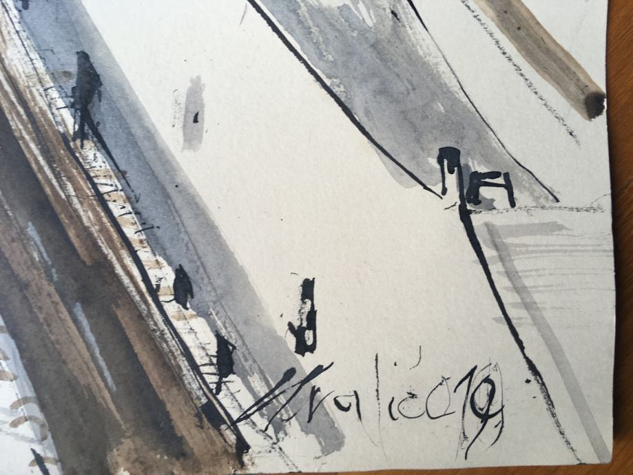 Izvrstan crtež na papiru iz 2014.g. hrvatskog akademskog slikara Franje Hvalića. Dimenzije s okvirom 42x32cm (dimenzije same slike 31x21cm).